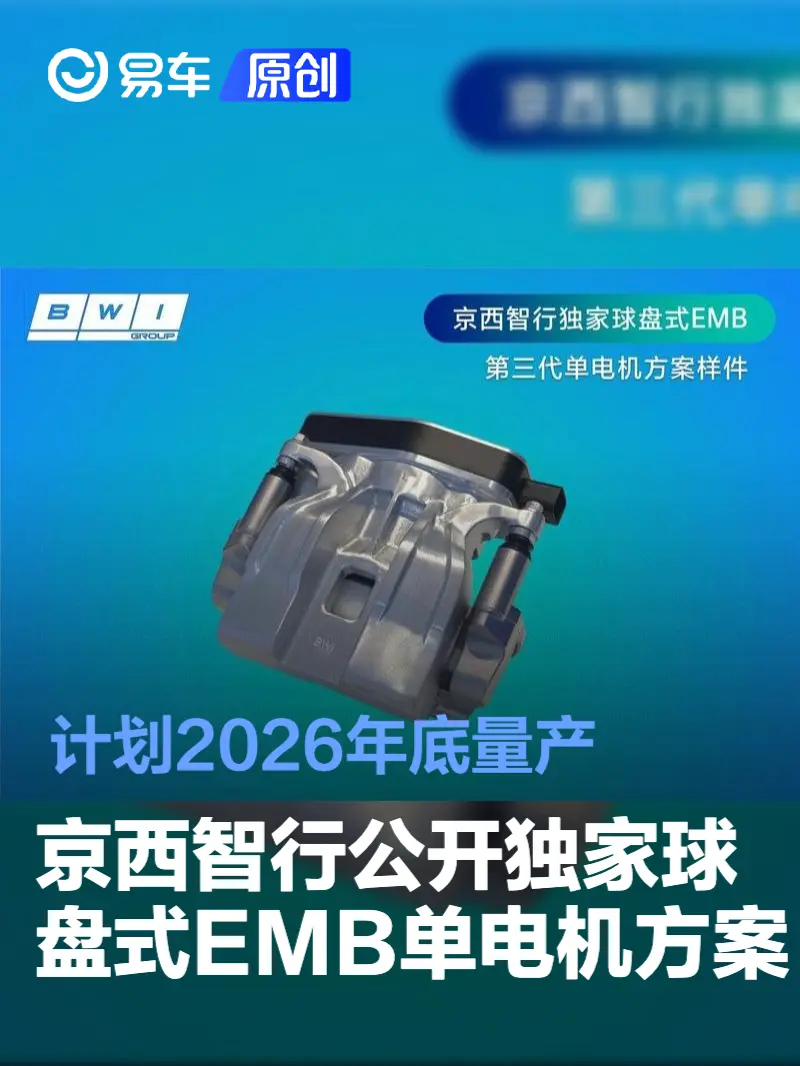 易车讯 近日,京西智行于上海举办电子机械制动系统(emb)交流会,首次公开自主研发的独家球盘式emb第三代单电机方案样件。京西智行制动业务副总裁薛春宇介绍,京西智行第三代emb已经过大庆和瑞典三轮冬季测试,并在盐城开展夏季测试,进入全面验证和算法优化阶段,规划于2026年初启动emb生产线筹备与供应链协同,于2026年底率先在国内量产。