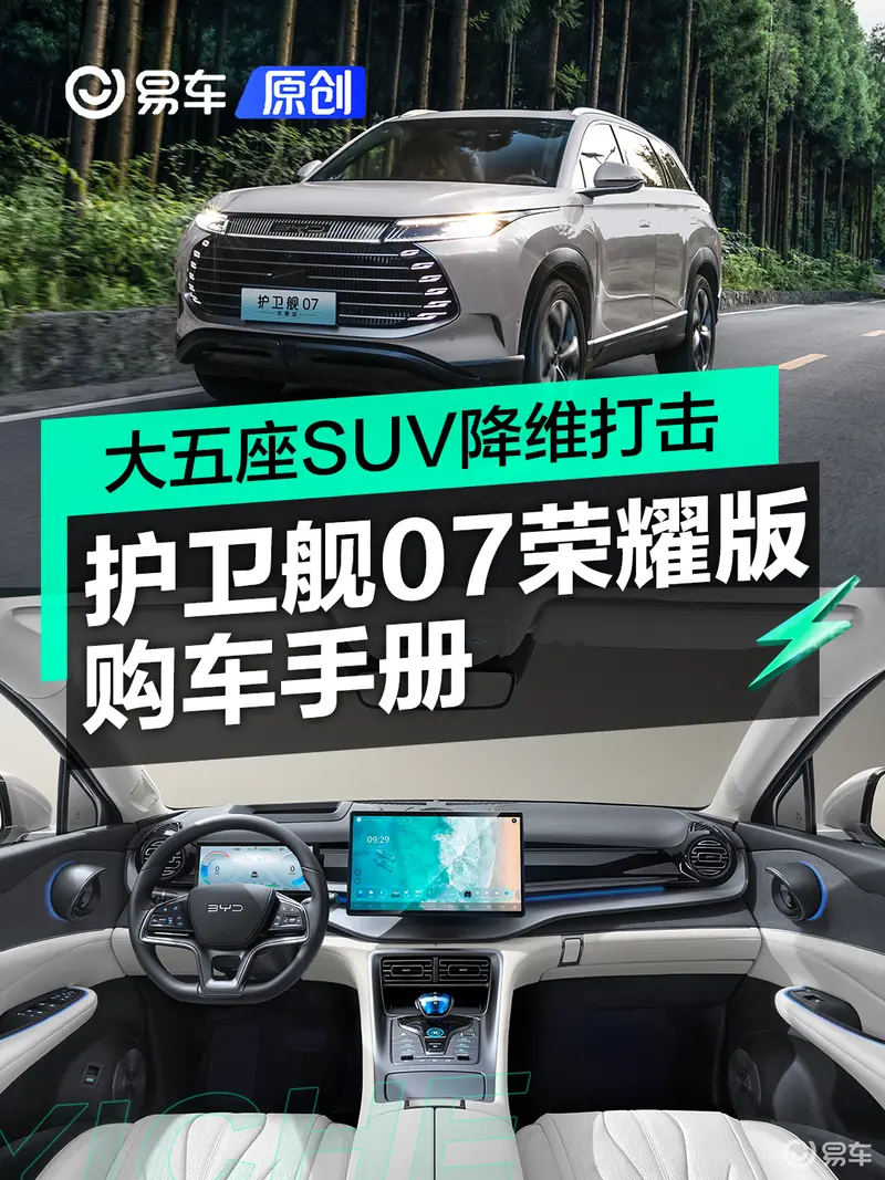 护卫舰07荣耀版17.98万元的100km精英型除了没有l2级驾驶辅助,其它配置可以说已经拉满了,例如全景影像、前后雷达、自动大灯、电动尾门等便利性配置齐全,前排电动座椅、50w手机无线充电、15.6英寸智能pad等提升愉悦感的配置也有,可谓是入门即高配。
