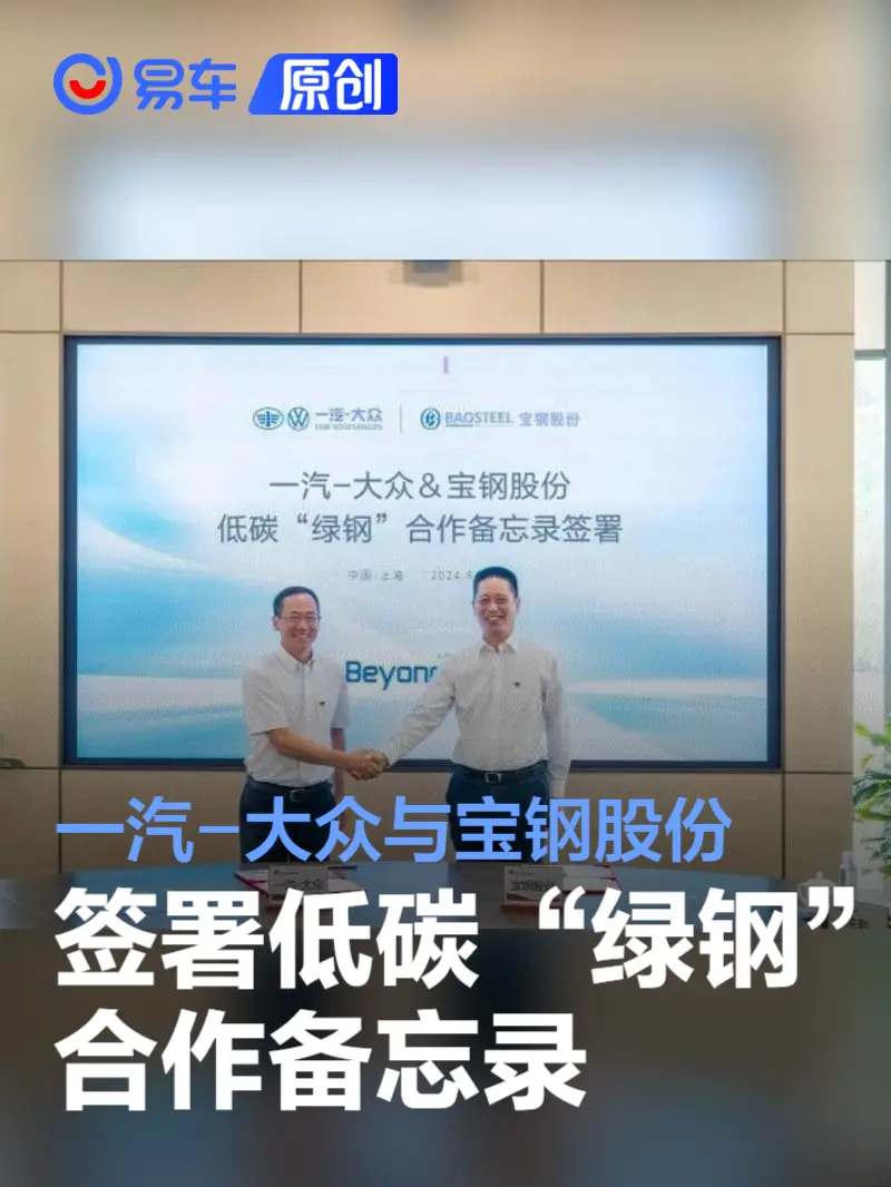 易车讯 日前,一汽-大众汽车有限公司与宝山钢铁股份有限公司在上海正式签署《一汽-大众与宝钢股份低碳“绿钢”合作备忘录》(以下简称:《备忘录》)。双方将发挥各自技术优势,全面响应国家双碳战略,落实一汽-大众实现产品全生命周期碳减排目标。