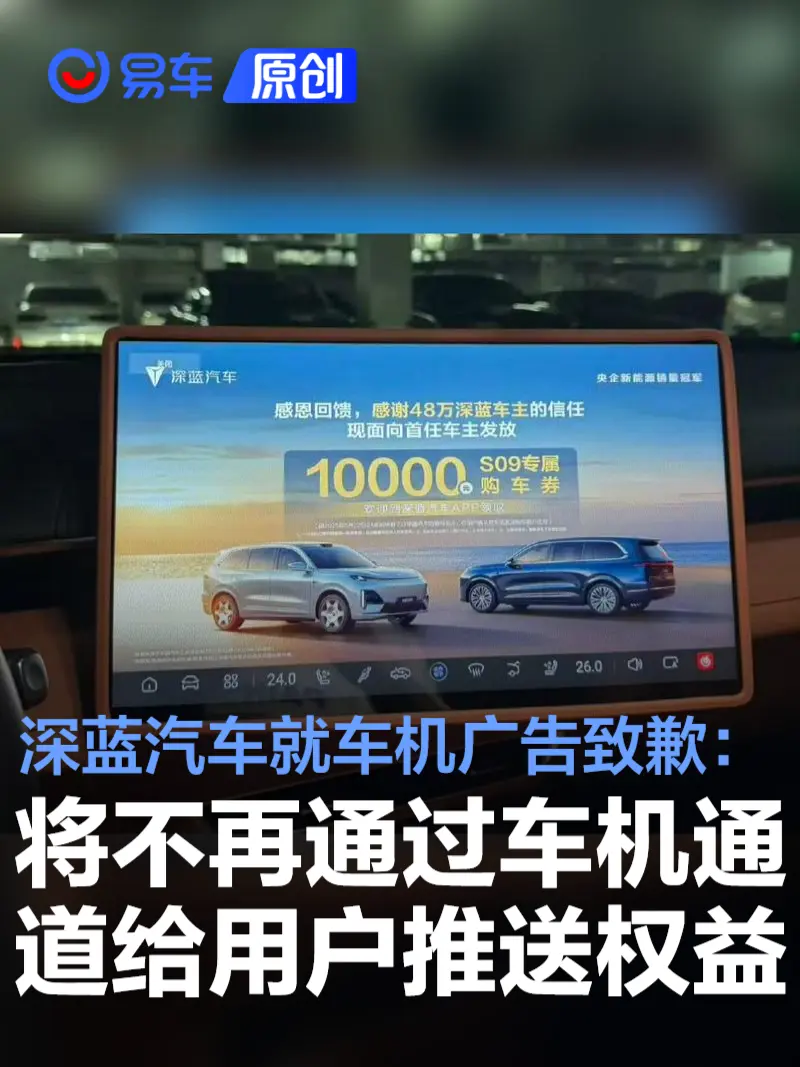 此次权益信息的推送,本意是希望感恩回馈深蓝车主,提醒已购首任车主查收专属购车券。我们在终端接待过程中,发现很多已购首任车主到店后尚不知晓该权益信息。很抱歉给车主朋友们带来不便,未来我们将不断改进服务质量,保证车主的用车体验,不再通过车机通道给用户推送权益提醒。