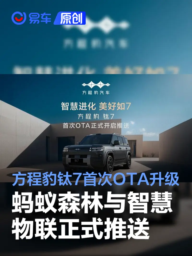 方程豹汽车旗下车型自上市以来便展现出统治级的市场表现。11月钛7单月销量达24019台,连续两个月突破2万台大关,上市80天累计销量已突破5万台,成功夺得混动suv与“方盒子”细分市场的双料销量冠军,整体成交均价超21万元,以现象级爆款之势持续领跑市场。在销量与口碑双丰收之际,钛7首次ota正式开启推送,以持续进化的产品力回应市场热情。首次升级新增智慧物联场景模式、车生活蚂蚁森林功能,并伴随多项功能优化,进一步丰富了用户的用车体验。这不仅兑现了品牌承诺,更是品牌提升用户智能、便捷、环保出行体验的重要举措。