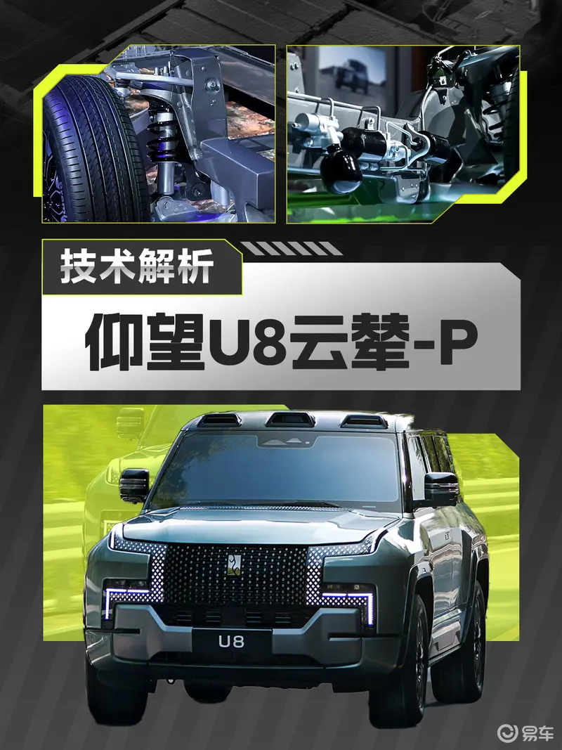 易车原创 ,国内第一款售价超过百万的新能源硬派越野车,想必大家对它的原地调头、横向平移以及应急浮水脱困还记忆犹新,而实现这些功能的核心就是仰望的易四方四轮四电机独立控制技术,但我今天其实给大家带来另外一个仰望u8上的黑科技----云辇-p,易四方加上它,仰望u8才能在各种路况大杀四方!