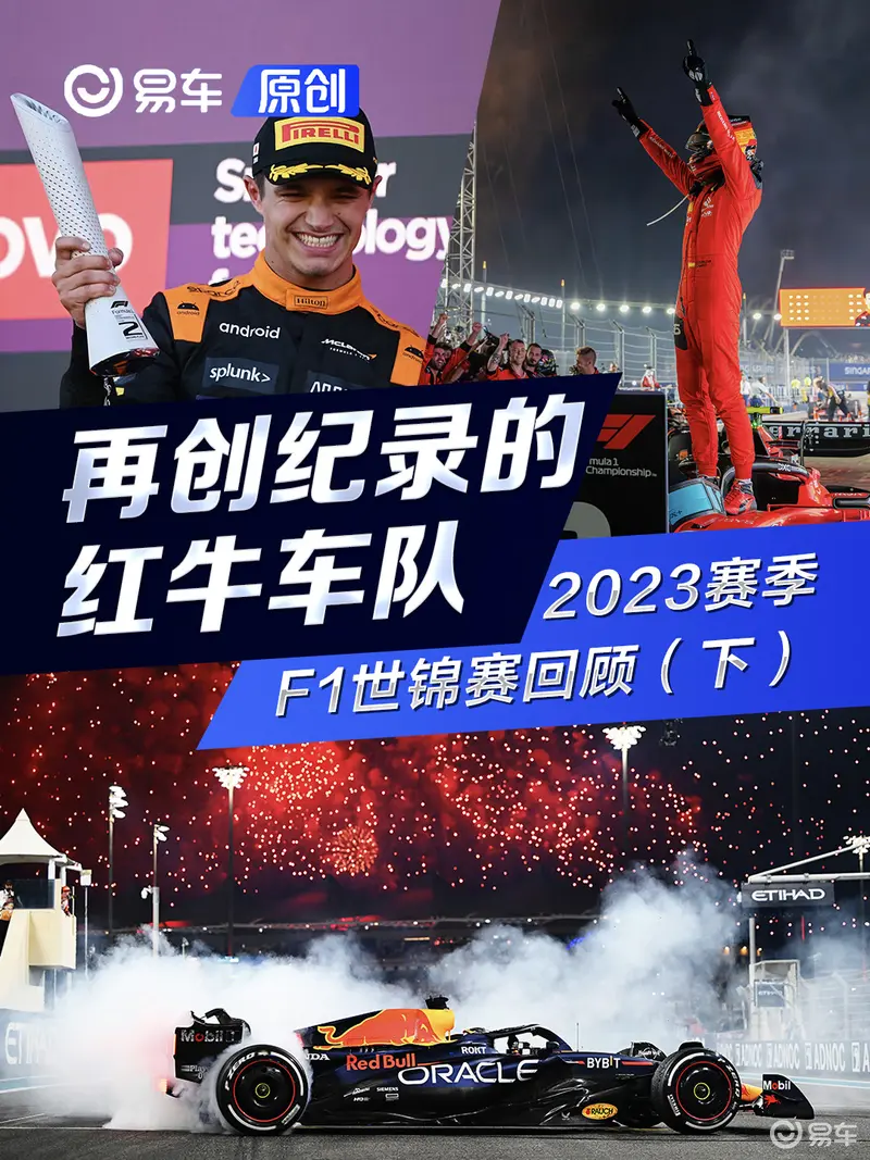 易车原创 不知道各位还对我去年的f1回顾文章有没有印象,当时的标题是“创纪录的一年”。而今年红牛车队及维斯塔潘又创下了前无古人的记录,所以今天回顾文章的标题我就不费脑子了,就叫“再创纪录的一年”吧。11月26日的那个周日,维斯塔潘以pole to win的姿态拿下了阿布扎比站的冠军,为他个人及红牛车队的2023画上了完美的句号。而今年,红牛车队差点儿包揽全年分站冠军,嗯,就差那么一点儿。