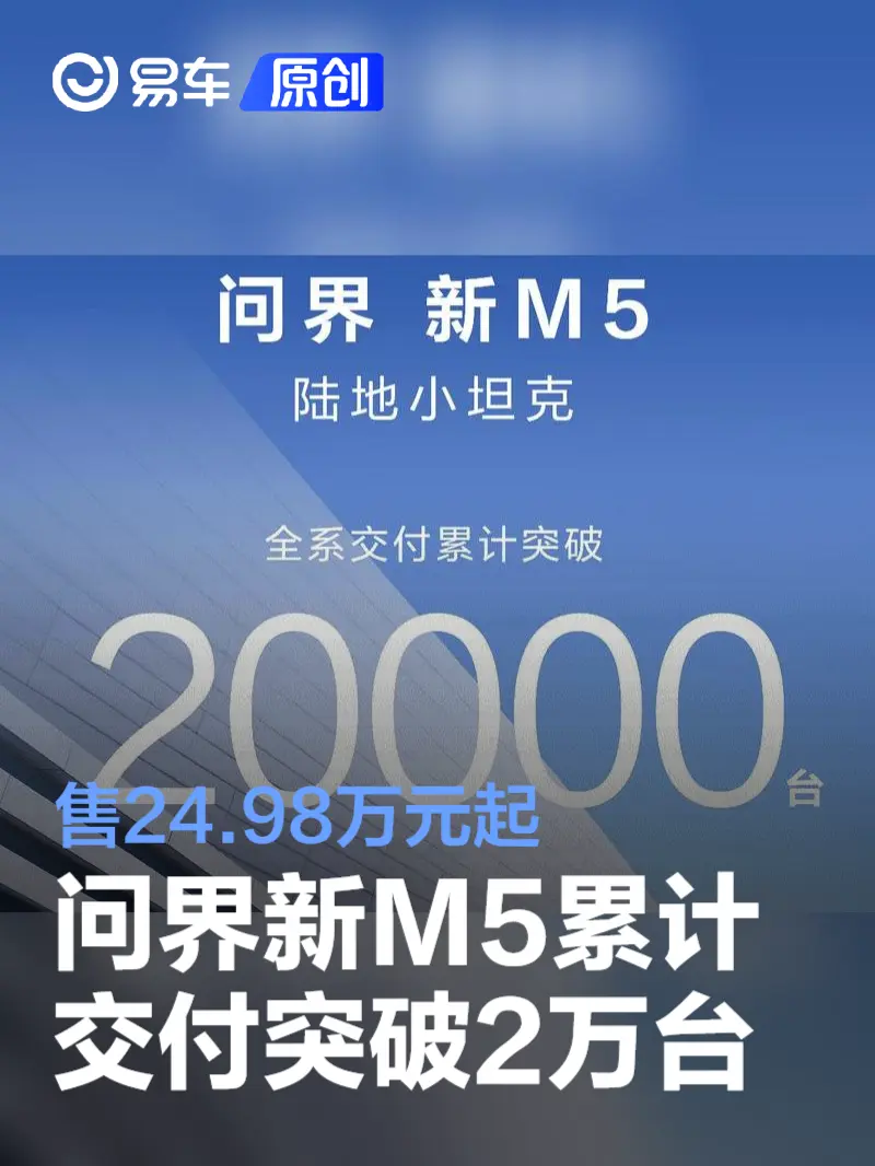 易车讯 8月21日,鸿蒙智行官方宣布问界心m5全系交付累计突破2万台。问界新m5于4月23日上市,共推出3款车型,售价区间为24.98-27.98万元,新车于5月15日正式开启全国用户交付。