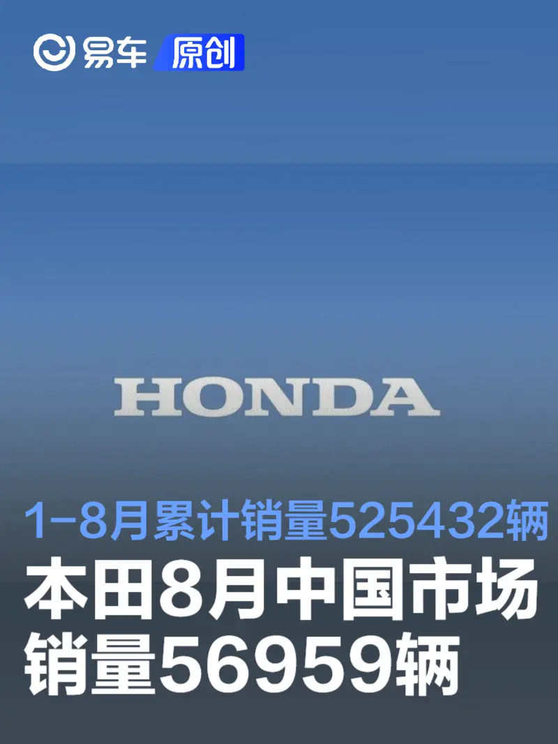 易车讯 9月4日,本田发布了2024年8月在中国市场的终端汽车销量。2024年8月本田在中国的终端汽车销量为56959辆。2024年1-8月本田在中国的终端汽车累计销量为525432辆,同期比72.8%,也就是说同比减少了27.2%。