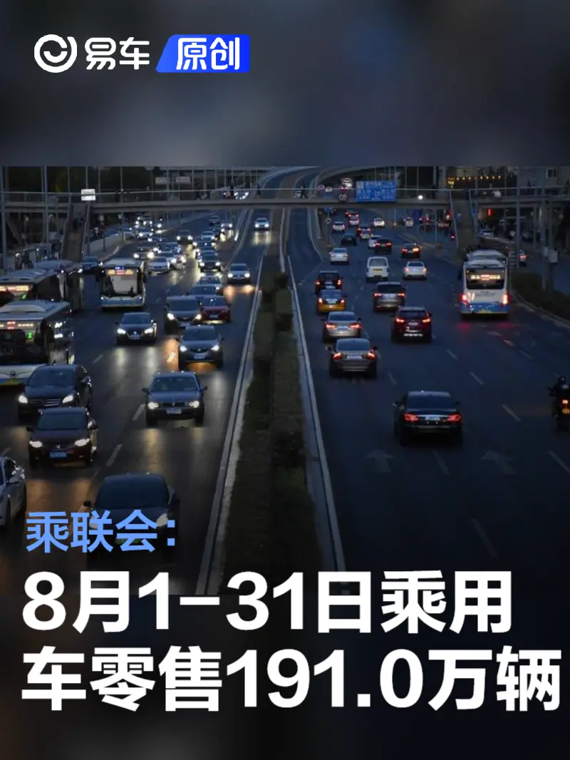 初步统计:8月1-31日,乘用车市场零售191.0万辆,同比下降1%,环比增长11%;今年以来累计零售1,347.7万辆,同比增长2%。