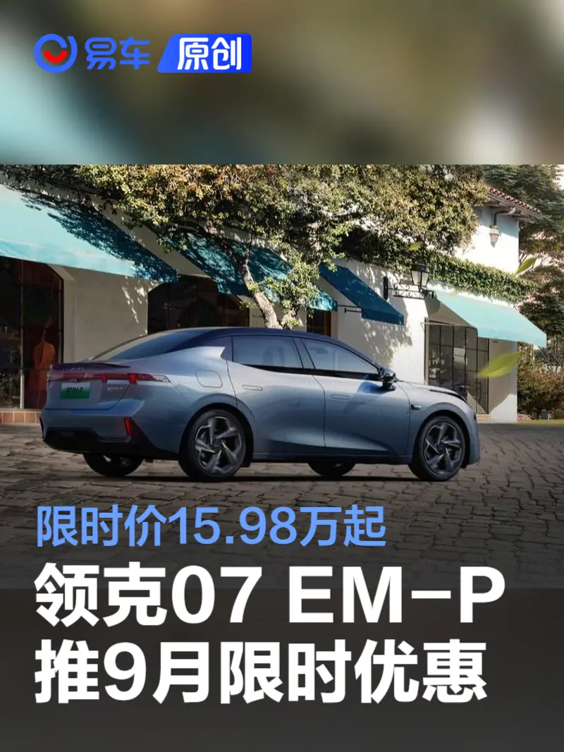 易车讯 近日,领克07 em-p推出9月限时购车权益,限时价15.98-17.98万元(全系限时价为享受“10000元限时购车礼”后的价格,含在官方指定合作平台购买保险产品后的3000元/辆保险补贴优惠。),此外还有2.6万元的置换/增购补贴、至高3000元高端进阶基金、2年8万0息等6重优惠。