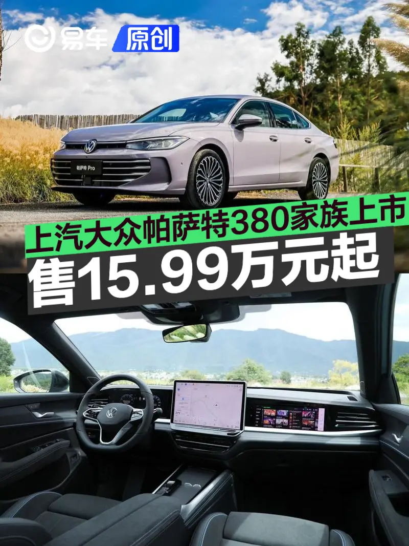 易车讯 9月10日,上汽大众全新一代 380tsi家族正式上市,全系共分5款车型,售价区间17.69-23.99万元。此外,官方还推出限时一口价,售价区间15.99-22.39万元。未来,帕萨特将采取新老同堂销售的策略。帕萨特 pro延续了海外版passat b9的设计风格,提供先锋版和星空版两种造型设计风格,以满足不同的用户需求,也为新车增添不少现代、运动以及科技的气息。