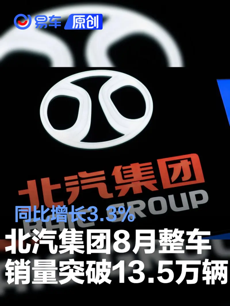 易车讯 日前,北汽集团公布最新销量数据。2025年8月,北汽集团整车销量突破13.5万辆,同比增长3.3%。1-8月整车销量累计实现107万辆,同比增长5.3%。