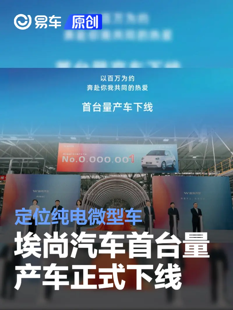 易车讯 9月26日,埃尚汽车官方宣布,其首台量产车正式下线,目标百万辆。埃尚汽车是柳州五菱新能源近期发布的全新新能源汽车品牌,首款车型埃尚a100c已经出现在8月的工信部申目录中,该车定位微型纯电动车,整体造型为时下非常流行的圆润可爱风格。