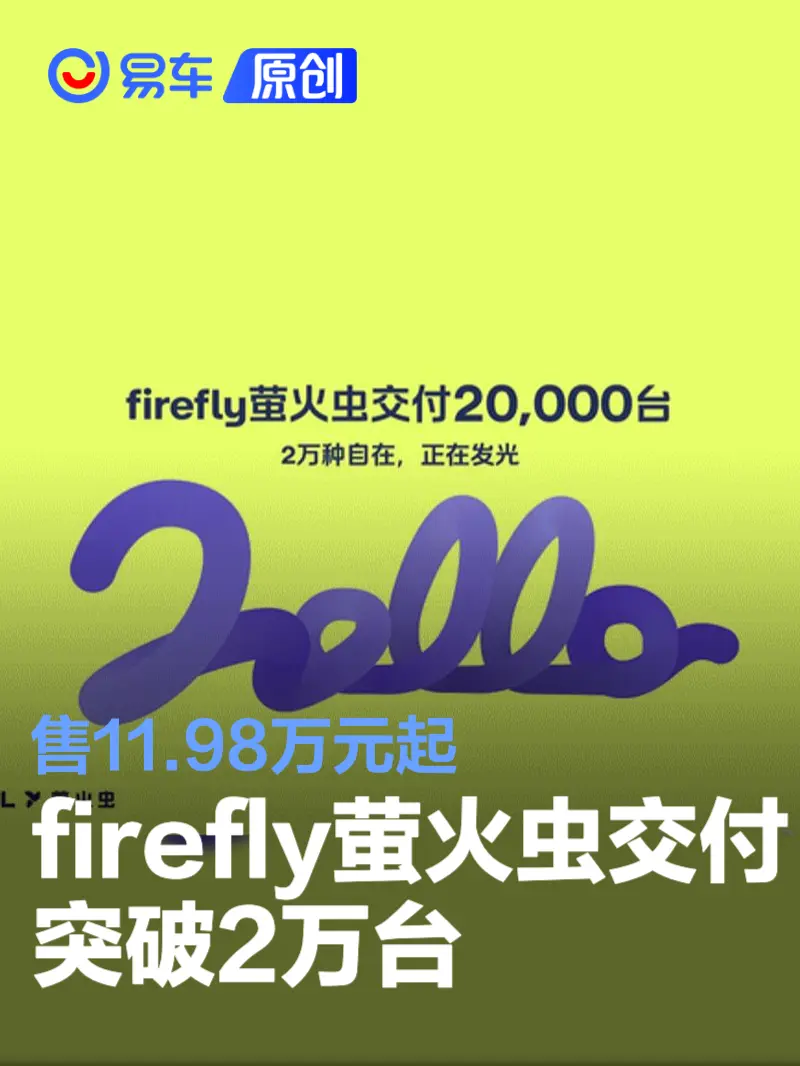 易车讯 日前,firefly萤火虫官方宣布,第20000台firefly萤火虫正式交付。新车此前于今年4月19日上市,达成第两万台交付用时仅五个月。