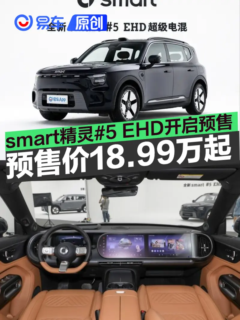 易车讯 9月28日,smart官方宣布精灵#5 ehd正式开启预售,预售价18.99万元起。新车继在成都车展发布全新技术品牌“ehd超级电混”后,首款搭载该技术的车型,该车cltc纯电续航252公里,综合续航可达1615公里。