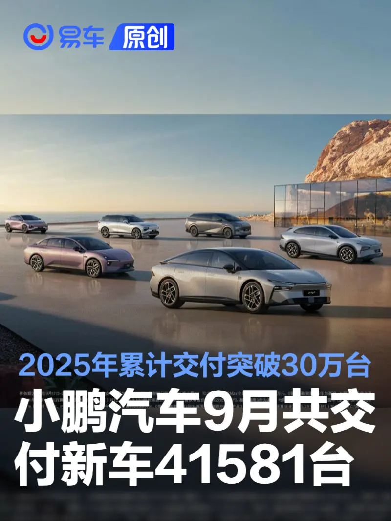 易车讯 10月1日,小鹏汽车公布最新交付成绩。2025年9月,小鹏汽车共交付新车41581台,同比增长95%,环比增长10%,单月交付量突破4万台,创下历史新高。2025年1-9月,小鹏汽车累计交付新车313196台,同比增长218%。