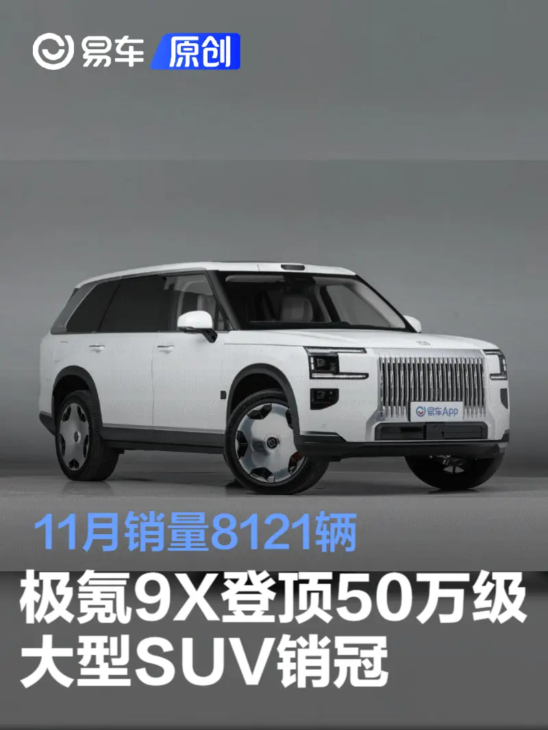 易车讯 日前,乘联会公布了2025年11月汽车零售量数据,极氪9x销量达到8121辆。而根据易车榜数据统计,极氪9x直接登顶50万级大型suv销冠。