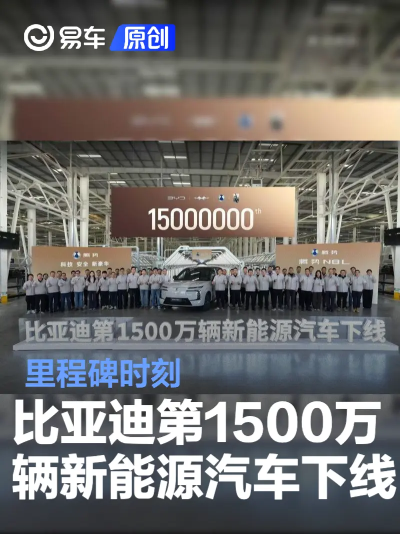 易车讯 12月18日,比亚迪汽车官方宣布第1500万辆新能源汽车迎来正式下线。第1500万辆新能源汽车为,作为参考新车共推出2款车型,售价区间29.98-32.98万元。比亚迪达成这一里程碑,用了整整17年,从1000万到1500万,只用了短短的13个月,再次刷新中国新能源汽车的“加速度”。