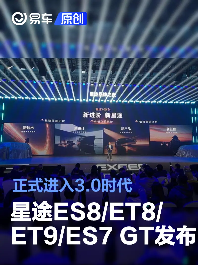 易车讯 12月22日,在星途品牌之夜活动上,星途正式发布了全新的品牌定位、全新的重磅技术以及es8、et8、et9、es7 gt四款新车,并宣布即将征战勒芒赛事。官方表示,将在10到20个月完成3款以上新车发布。