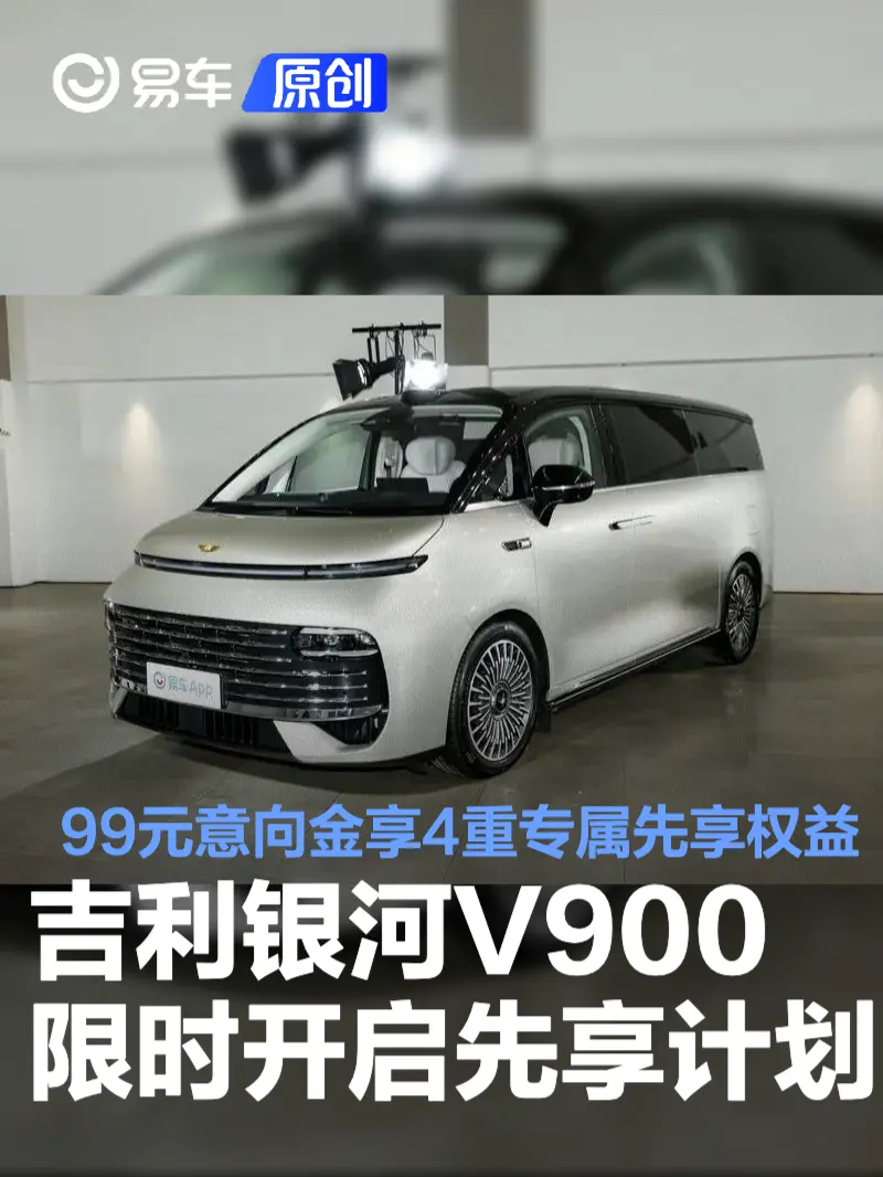 易车讯 12月25日,吉利银河官方宣布v900限时开启先享计划。支付99元意向金,可享受4重专属先享权益,包含天马曜金礼、私享品鉴礼、步步高升礼、全程护航礼。