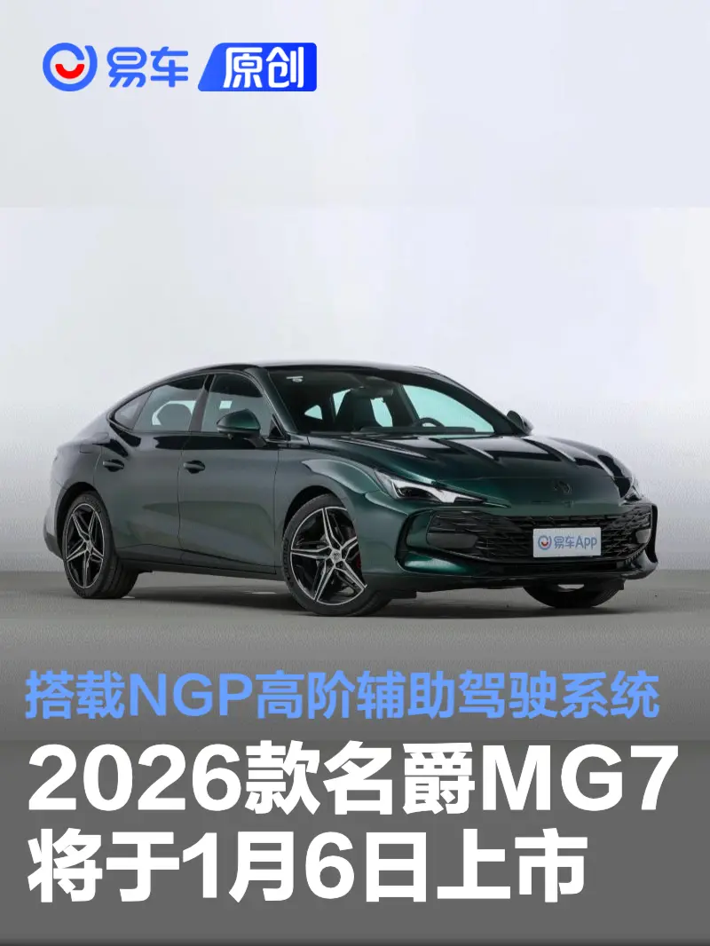 易车讯 我们从官方获悉,2026款名爵mg7将于2026年1月6日上市。新车将搭载ngp高阶辅助驾驶系统,并配备了ai语音大模型,智能化显著提升。动力方面,新车搭载2.0t 9at组合。