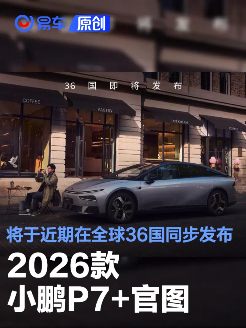 易车讯 12月29日,小鹏汽车董事长何小鹏在社交媒体上发布了2026款小鹏p7 官图,官图显示该车将于近期在全球36国同步发布。何小鹏表示,新款p7 在座舱精致感和舒适性全面升级,包括104项的体验升级和36%的一级总成升级。动力方面,新款p7 提供纯电和增程双动力,增程版综合续航里程将达到1550公里,纯电版续航里程为725公里。