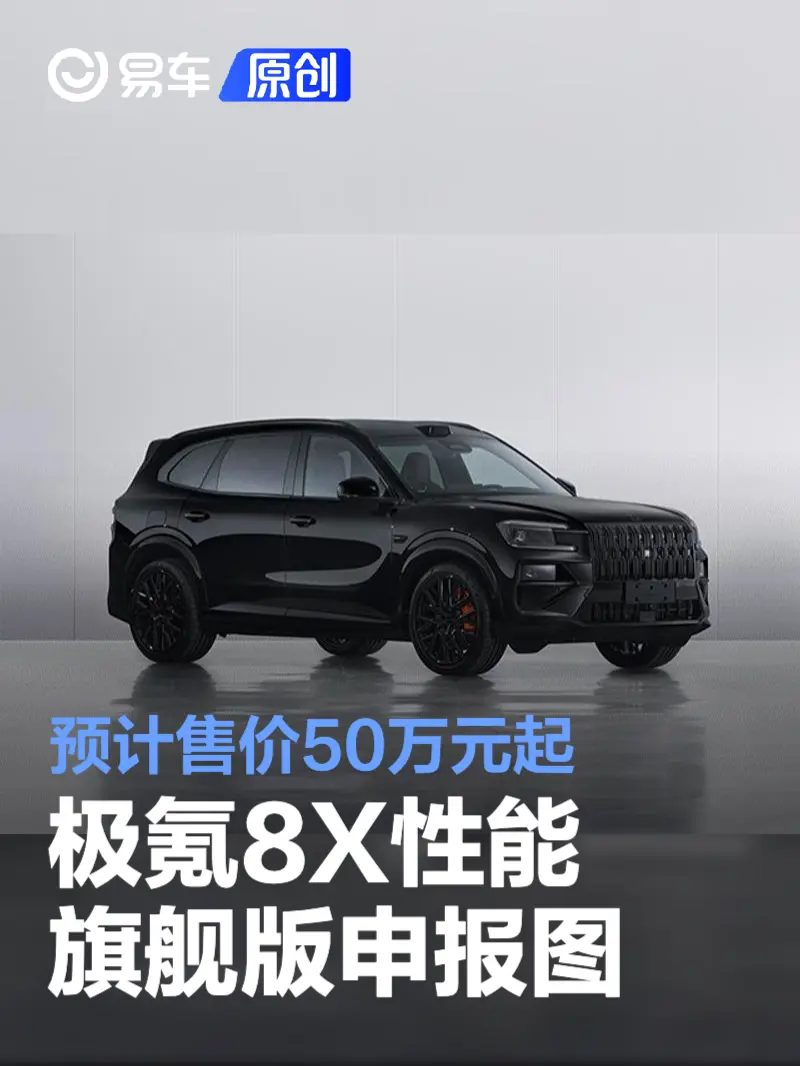 易车讯 日前,我们在工信部网站上获取到了一组极氪8x性能旗舰版申报图。新车配备全黑外观套件、碳纤维组件。有消息表示,新车将采用三电机系统,最大马力或达1400匹,预计售价50万元起。