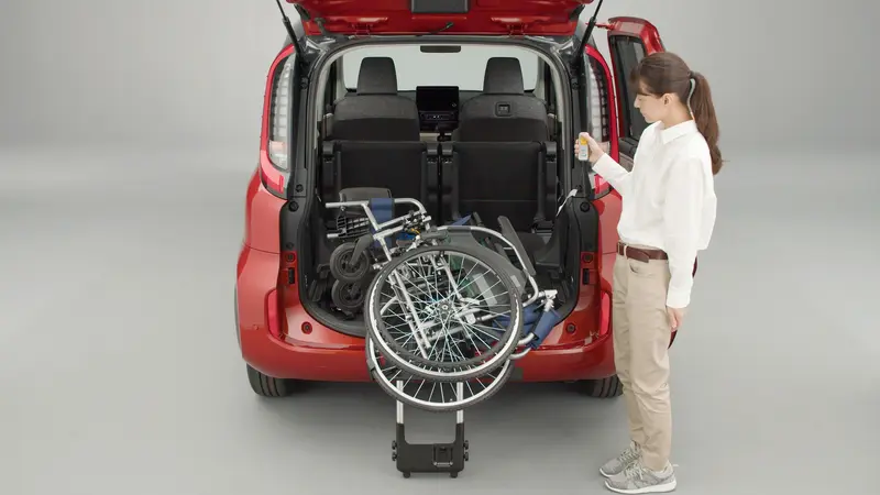 前者以“微型绞盘”为主要结构,配有相应的滑轨,可电动收纳至行李厢。允许折叠后总高775毫米、总长1035毫米、总质量35公斤以内的轮椅。