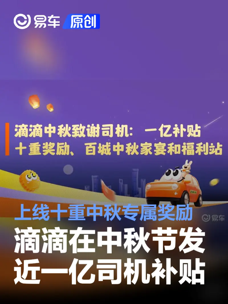 易车讯 为感谢司机师傅假期辛勤出车,滴滴在中秋节当天发放近一亿司机补贴,上线十重中秋专属奖励,推出流水加速卡和免佣卡,并在百城开展“滴滴司机福利站”“司机中秋家宴”,为司机师傅假期出车提供收入保障,送上节日祝福。