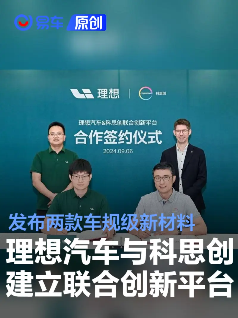 易车讯 9月9日,理想汽车与德国材料制造商科思创签署战略合作协议,成立联合创新平台,共同推动基于未来出行的智能创新材料研发。同时,活动当天双方联合发布了两款车规级新材料。