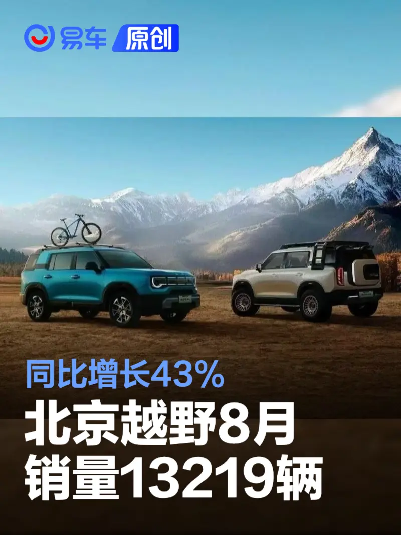 易车讯 今日,北京越野公布最新销量数据:8月销量13219辆,同比增长43%,连续5个月销量过万。其中,bj40系列销售7093台,同比增长203%;bj30系列销售5009台,同比增长55%。