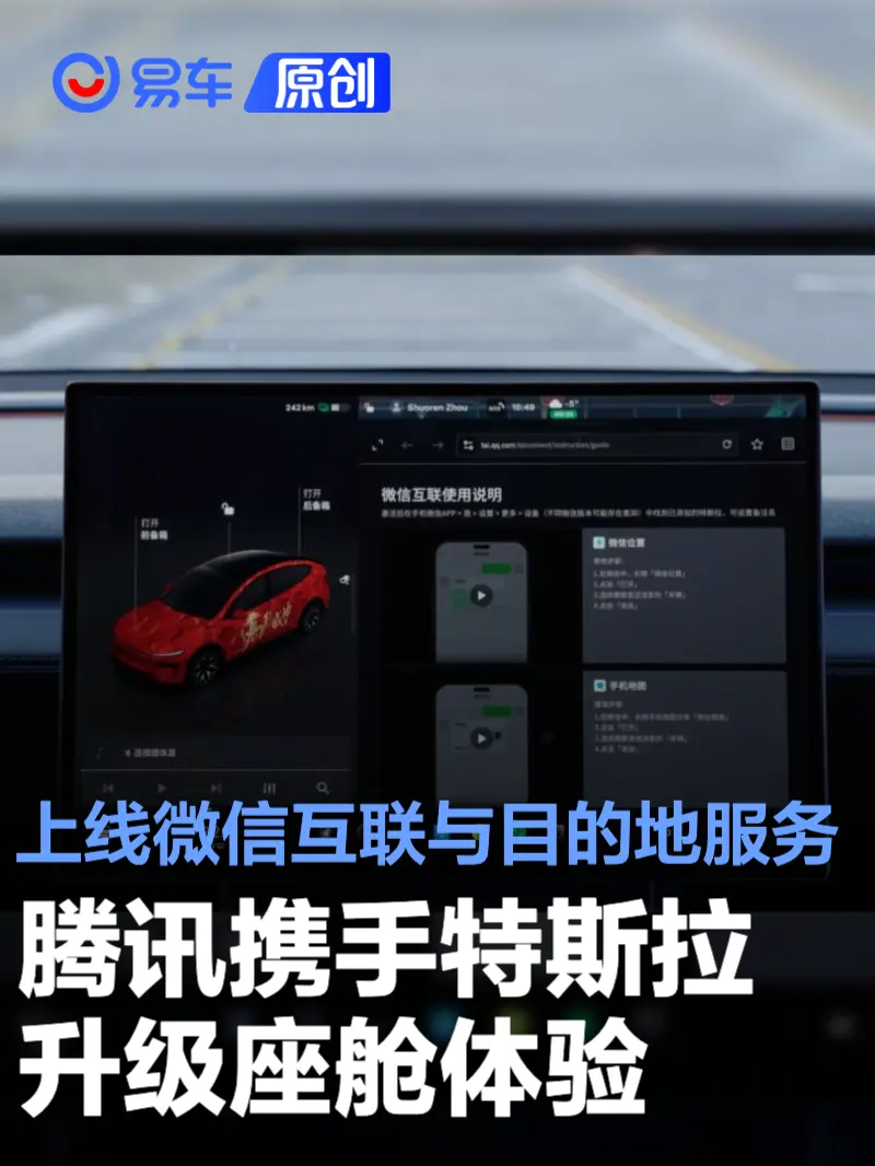 易车讯 近日,腾讯与特斯拉共同升级车主座舱,上线“微信互联”、“目的地服务”两大功能。依托腾讯生态与技术优势,共同打造无缝连接、智能便捷的座舱新体验。